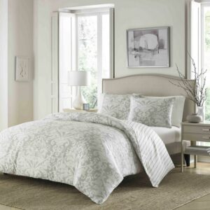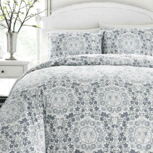 Stone Cottage Camden Contemporary Traditional 230 Thread Count Gray Medallion Patterns Polyester Cotton Sateen Comforters, Full/Queen, Washable