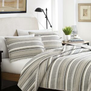 Stone Cottage Conrad Contemporary 230 Thread Count Gray Stripes Geometric Polyester Cotton Comforters, Full/Queen, Washable