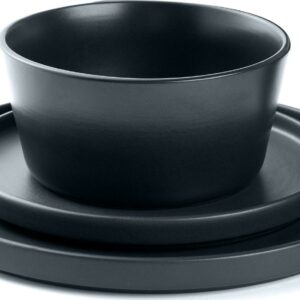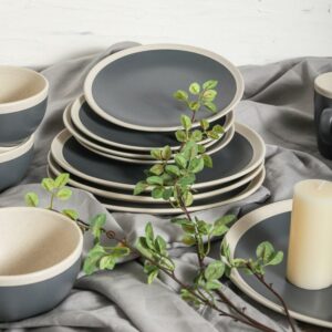 Stone Lain Serenity 16-Piece Stoneware Round Dinnerware, Service for 4, 2-Tone, Dark Gray-Cream