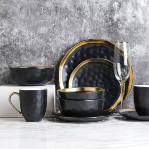 Stone Lain Florian Modern Porcelain Dish Set, 16-Piece Dishes for 4, Gold and Black