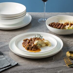 Stone Lain Gabrielle 12-Piece Dinnerware Set Bone China, White and Gold