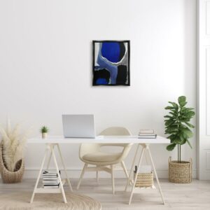 Stupell Industries Abstract Masculine Cobalt Blue Grey Black Design Jet Black Framed Floating Canvas Wall Art, 16×20, by Studio W