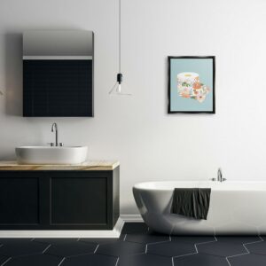 Stupell Industries Spring Floral Print Toilet Paper over Blue Jet Black Framed Floating Canvas Wall Art, 16×20, by Loni Harris