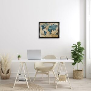 Stupell Industries Vintage Abstract World Map Design Jet Black Framed Floating Canvas Wall Art, 16×20, by Art Licensing Studio