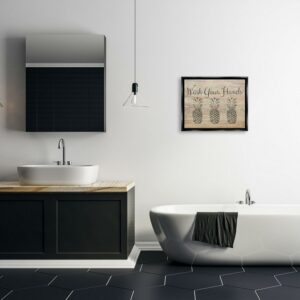Stupell Industries Wash Your Hands Pineapple Jet Black Framed Floating Canvas Wall Art, 16×20, by Linda Woods