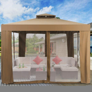 SUGIFT 10’x10′ Outdoor Gazebo Patio Tents Garden Canopy Shelter W/ Netting, Brown