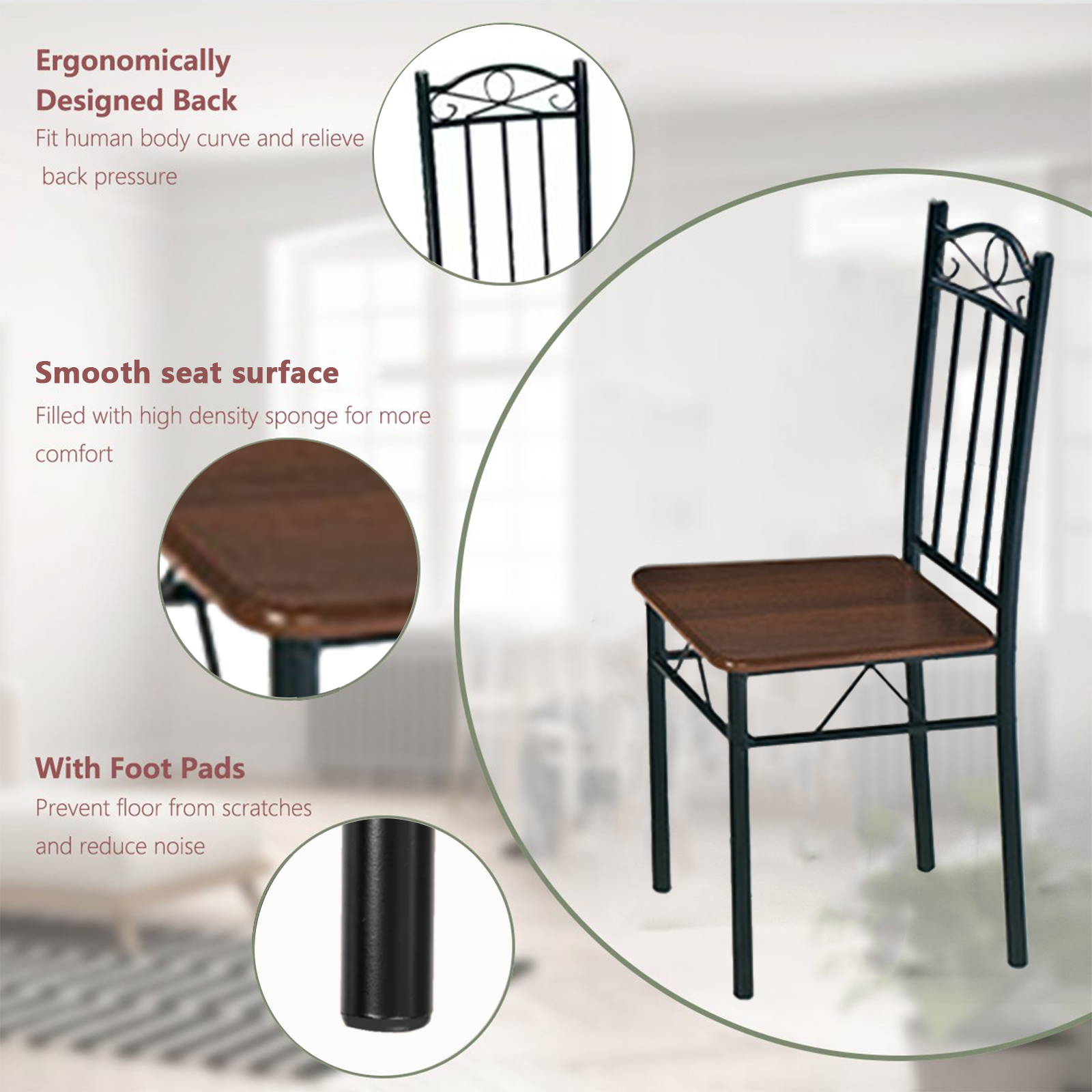 SUGIFT 5 Piece Dining Table Set Wood Metal Table and 4 PU Cushion Chairs Kitchen Breakfast Furniture, Black