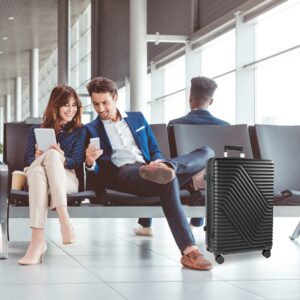 SUGIFT Luggage 3 Piece Set PC +ABS Suitcase Set with Wheels Carry on and Checked luggage 20in24in28in Black
