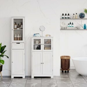 SUGIFT Bathroom Cabinet, Linen Storage Cabinet with Doors Adjustable Shelves White-Upgrade hinge