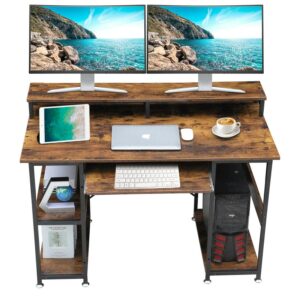 SUGIFT Computer Desk 47″ with Keyboard Tray, Home Office PC Desk Study Writing Table with Monitor Stand Storage Shelf, Brown