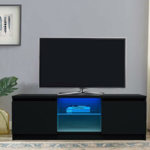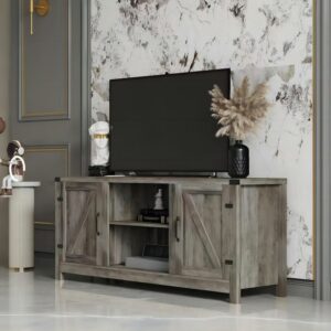 SUGIFT Modern Farmhouse TV Stand Rustic Barn Two-Door TV Cabinet for TVs up to 65″, Gray Wash