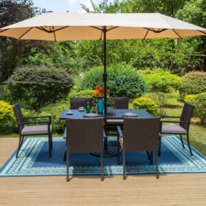 Summit Living 13 ft Large Patio Umbrella Double-Sided Rectangular Outdoor Market Table Umbrella for Outside – Beige