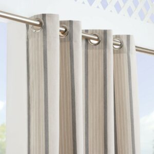 Sunbrella Canvas Stiped Light Filtering Grommet Top Single Curtain Panel, Pebble, 52 x 96
