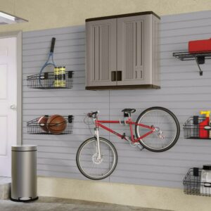 Suncast 30″W x 12″D x 30.25″H Resin Wall Garage Storage Cabinet, Platinum Metallic