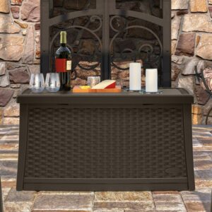 Suncast Elements Outdoor Patio Club Chair with 11-Gal. Under-Seat Storage, Java