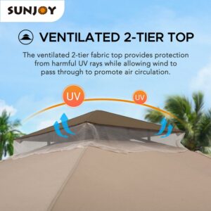Sunjoy 9.5 ft. x 9.5 ft. Gazebo with 2-Tier Canopy Roof, Steel Frame Soft top Gazebo with Ceiling Hook and Mosquito Netting, Tan and Brown