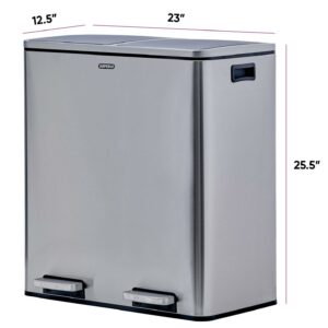 Superio Brand Double Stainless Steel Step-On Trash Can and Recycling Bin with Handle, Includes 2 x 8 Gallon
