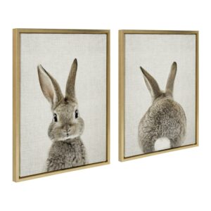 Sylvie Bunny Portrait on Linen and Bunny Tail on Linen 18 in x 24 in Framed Painting Canvas Art Prints, by Kate and Laurel Set of 2