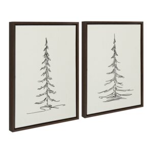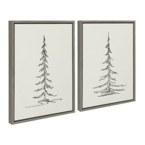 Sylvie Minimalist Evergreen Trees 18 in x 24 in Framed Painting Canvas Art Prints, by Kate and Laurel Set of 2