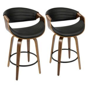 Symphony Mid-Century Modern Counter Stool in Walnut and Black Faux Leather by LumiSource – Set of 2