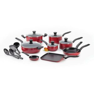 T-fal Initiatives, 18 Piece Non-Stick Cookware Set, Red