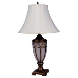 Table Lamp – Brushed Steel Finish – White Hardback Fabric Shade – Style C