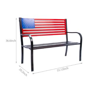 Backyard Expressions Metal American Flag Patio/Garden Outdoor Bench – Red/White/Blue