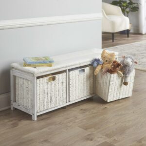 Badger Basket Kid’s Storage Bench with Woven Top and Baskets 2.7 Cu ft. – White