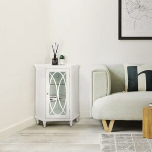 Teamson Home Glancy Freestanding Corner Floor Accent Cabinet with Faux Louvered Door, White