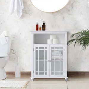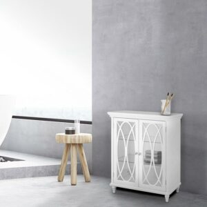 Teamson Home Neal Bathroom Storage Floor Accent Cabinet with 2 Glass Doors, White