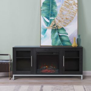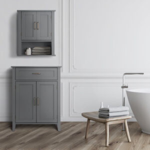Teamson Home Mercer Freestanding Two-Door Floor Storage Accent Cabinet with Top Drawer, Gray