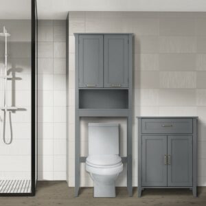 Teamson Home Glancy Wooden Linen Tower Cabinet with Storage, Gray