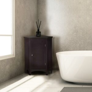Teamson Home Glancy Freestanding Corner Floor Accent Cabinet with Faux Louvered Door, Dark Brown