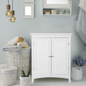 Teamson Home Glancy Freestanding Two-Door Floor Accent Cabinet with Faux Louvered Doors, White