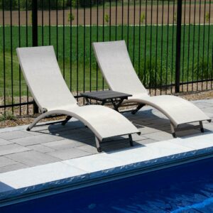 The Hamptons Collection 3 Piece White and Black Aluminium Folding Table and Reclining Chairs Set 69”