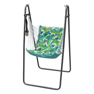 The Hamptons Collection 64″ Black and Ivory Contemporary Hanging Chair and Stand