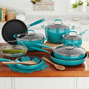The Pioneer Woman Frontier Speckle 18-Piece Aluminum Cookware Set, Teal