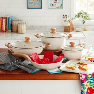 The Pioneer Woman Prairie Signature 14-Piece Cast Aluminum Cookware Set, Linen Speckle