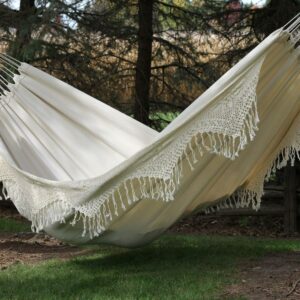 The Hamptons Collection Brazilian Style Two Person Double Hammock with Fringe – 144” x 63″ – White