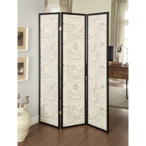 Three Panel Folding Floor Screen with Postal Script Panels Brown – Saltoro Sherpi