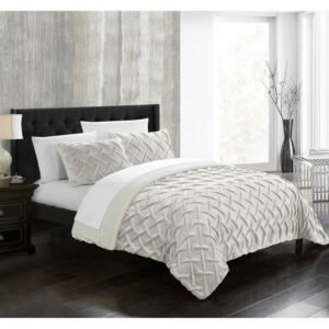 Thirsa 3 or 2 Piece Comforter Set Ultra Plush Micro Mink Criss Cross Pinch Pleat Sherpa Lined Bedding
