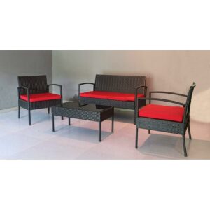 Thy-Hom Teaset 4 Piece Patio Bitro Set Outdoor Conversation Set in Black/Red