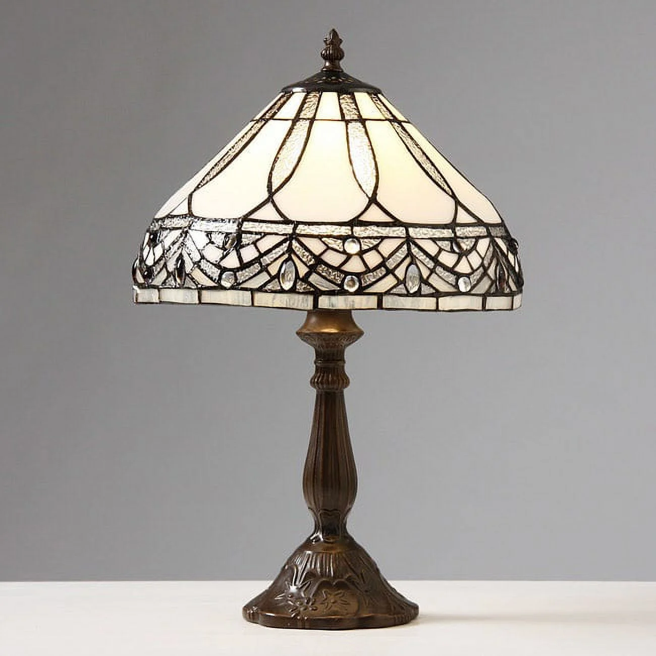 Tiffany-style Mission-style White Torchiere Floor Lamp with Durable White Zinc Construction