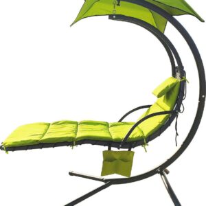 BalanceFrom Hanging Rocking Curved Chaise Lounge Chair Swing with Chion, Pillow, Canopy, Stand and Storage Pouch, 330-Pound Capacity