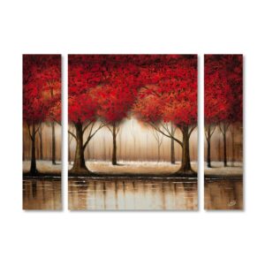 Trademark Fine Art “Parade of Red Trees” Canvas Art by Rio Three Panel Set