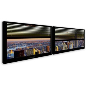 Trademark Fine Art Landscapes 2 Panel Art Set ‘ Window View NYC Sunset 4 ‘ by Philippe Hugonnard