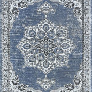 Traditional 5×8 Area Rug (5’3” x 7’3”) Oriental Blue, White Living Room Easy to Clean