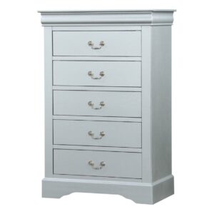 Traditional Style Five Drawer Wooden Chest with Bracket Base, Gray- Saltoro Sherpi