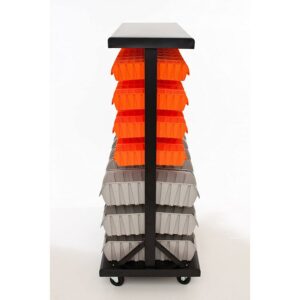 TRINITY Dual Sided Color Coded Rolling 94 Bin Storage Rack, Orange & Grey