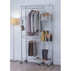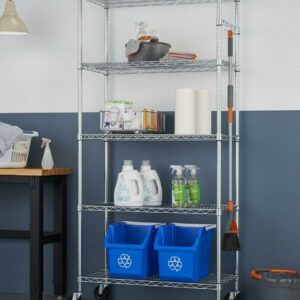 TRINITY EcoStorage® 5-Tier Chrome Wire Shelving Rack w/ Sidebar and Wheels, 36x18x72 – NSF